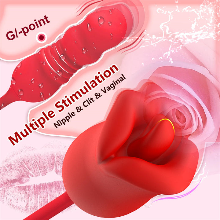 Rose Rotating Tongue G Spot Vibrator With 7 Tongue Licking Thrusting Modes